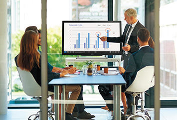 Das neue PN-40TC1 mit seiner gut 100 cm Bildschirmdiagonale (40’’) hat alles, was die Großen auch haben. Und bietet sogar noch mehr: es ist das erste der branchenführenden BIG PAD-Modelle mit interaktivem Display, das perfekt auf die Anforderungen an Meetings auf kleinstem Raum – den sog. „Huddle Rooms“ – mit 2–6 Personen abgestimmt ist. Es verfügt über die reaktionsschnelle P-CAP-Touch-Technologie und überzeugt durch eine problemlose, direkte und einfache BYOD-Kooperation mit Mobilgeräten. Ob Sie ein Brainstorming durchführen, ein Geschäftsmeeting abhalten oder eine kleine Gruppe schulen: der PN-40TC1 kann auch als Flip-Chart fungieren oder elegante Pinnwand eingesetzt werden. Sie können Daten importieren, um diese anzuzeigen, frei darauf schreiben und Ihre geschriebenen Notizen digital speichern, um sie später wieder abzurufen. Auch Videokonferenzen und Video-Kooperation sind unerlässlich, daher können die Benutzer eine Webcam ganz einfach an die übliche Stelle an der Oberseite des Geräts anbringen. Schnelle, produktive Teamarbeit wird Realität. Highlights: