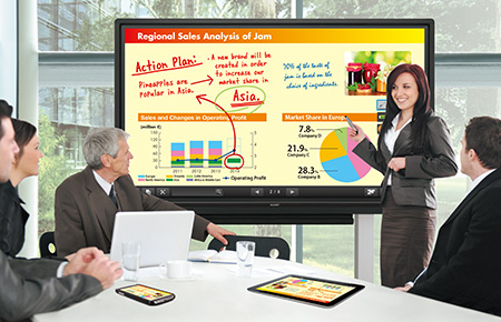 Der neue moderne 70“ BIG PAD-LCD-Monitor von Sharp ist für die reibungslose und mühelose Kommunikation in einer großen Vielfalt von Umgebungen konzipiert. Sharp hat den PN-70TB3 durch Integrieren eines 176-cm-LCD-Monitors, Erkennen von bis zu zehn Berührungspunkten auf einmal, gleichzeitiges Schreiben von bis zu 4 Benutzern, der neuen SHARP Pen Software von Sharp und der neuen eingebetteten Software SHARP Display Connect zum idealen Tool für Besprechungen, Videokonferenzführung und Unterrichtsstunden gemacht. Highlights:
