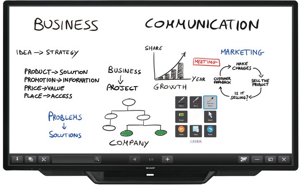 Der Sharp BIG PAD PN-80SC5 ist das ideale Modell für höhere Bildungseinrichtungen und die Anwendung im Firmenbesprechungsraum. Er bietet die modernste Zusammenarbeit für ein außergewöhnliches Preis-/Leistungsverhältnis und der 80" BIG PAD aus der neusten Generation von Sharp ist für den Hörsaal und SME Umgebung optimiert, um die Kommunikation zu verbesserst und schafft die besten Bedingungen für eine effektive Zusammenarbeit. In einem Unterrichtsraum oder Besprechungsraum kann es manchmal eine Aufgabe sein, jeden zu begeistern und einzubeziehen. Hier kommt der innovative Sharp BIG PAD PN-80SC5 richtig zur Wirkung. Mit dem großzügigen Full-HD 80" Touchscreen-Monitor können Sie mit Leichtigkeit und Präzision zeigen, kreieren und mit anderen zusammenarbeiten. Die allseits gelobte, intelligente und intuitive SHARP Pen-Software eröffnet neue Wege für das Brainstorming, mitteilen von Ideen und Entscheidungsfindung. Der kraftvolle, flexible und überraschend kostengünstige Sharp BIG PAD PN-80SC5 stellt eine überragende Plattform zur Verfügung, um sowohl die Zusammenarbeit zu beschleunigen, die Zuschauerwirkung zu verstärken oder einfach die Besprechungseffizienz im Firmenbüro oder in einer Universitätsumgebung zu erhöhen. Zudem hat Sharp einen One Touch-Abschalt-Button am Gerätrand entwickelt: Dieser schaltet die Hintergrundbeleuchtung der Displays direkt aus, ohne dass die Geräte heruntergefahren werden. Dies bedeutet, dass Inhalte je nach Bedarf ein- und ausgeschaltet werden können – praktisch während laufender Präsentationen, um die volle Aufmerksamkeit des Publikums zu erhalten. Highlights: